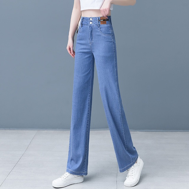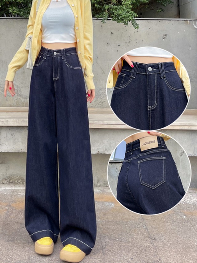 ハイウエストスリムナローバージョンワイドレッグストレートジーンズ