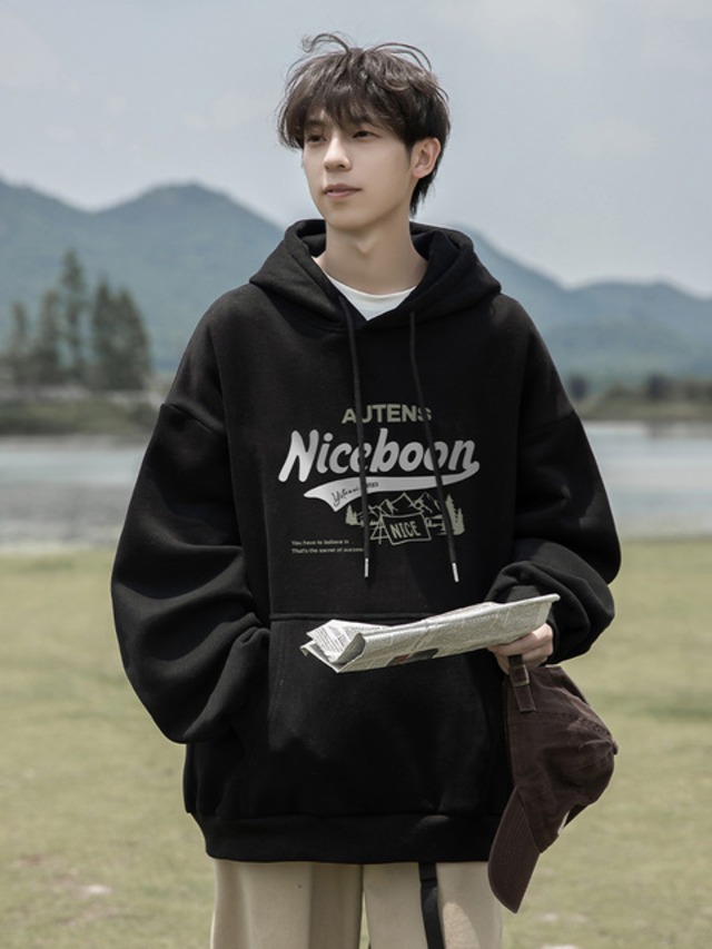 スウェットシャツ メンズ コットン ルーズ プラス 起毛 厚手 パーカー ブラック 冬 春 秋 スポーツ レジャー フード付き