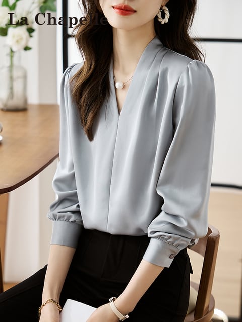 この【Vネックサテンシフォン長袖シャツ】を身にまとい、エレガントでスタイリッシュな日常をご堪能ください!ぜひこの特別な一着をあなたのワードローブに加え、さまざまなシーンで活躍するアイテムにしてください!