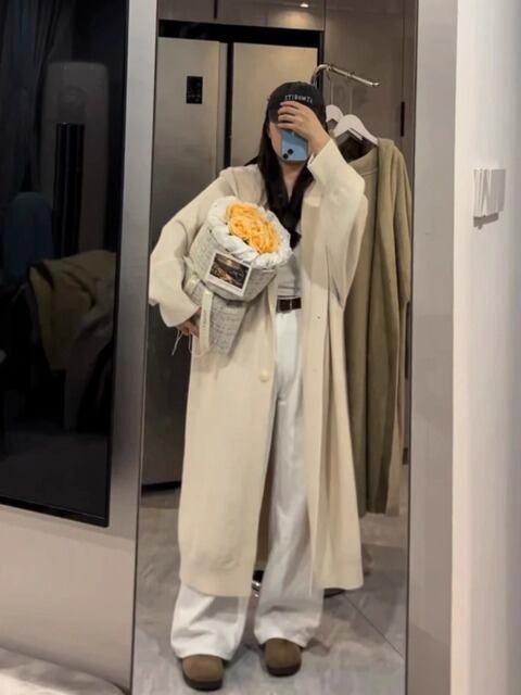 ・素材:ウールニット(柔らかく、しっかりとした生地感が特徴で、優れた保温性を備えています。フード付きのデザインが、カジュアルながらも洗練された印象を与え、着る人の魅力を引き立てます。ロング丈で体型を美しく見せるシルエットもポイントです)