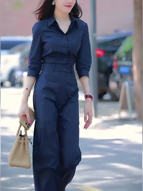 この【ネイビーブルージャンプスーツ春ファッションシンプルなワンピース長袖ジャンプスーツ】を身にまとうことで、あなたの毎日のスタイルに心地よさと洗練をプラスすることができます!ぜひこの特別な一着をワードローブに加え、多様なコーディネートを楽しんでください!