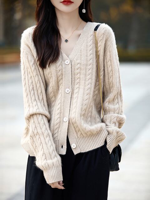 この【Vネック ピュアウール セーター レディース カーディガン】を身に着けることで、あなたのスタイルに新たな魅力を加えることができます!ぜひこの特別な一着をワードローブに加え、心地よい時間を楽しんでください!