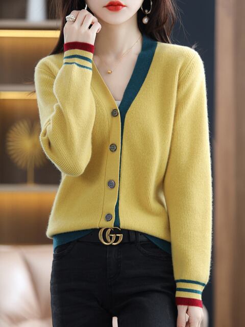この【Vネック ピュアウール セーター レディース カーディガン】を身に着けることで、あなたのスタイルに新たな魅力を加えることができます!ぜひこの特別な一着をワードローブに加え、心地よい時間をお楽しみください!