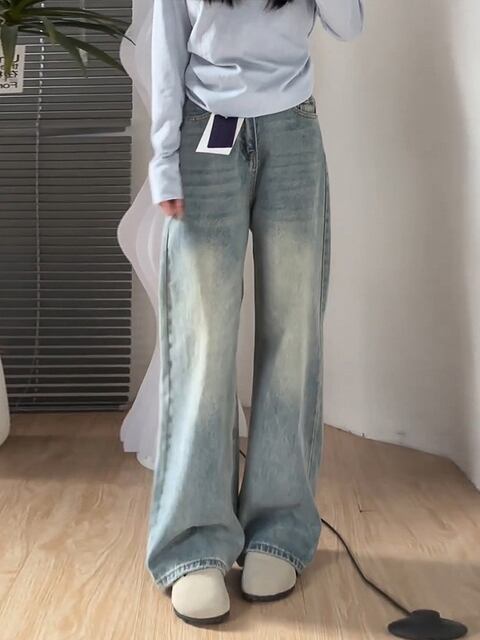 この【ライトカラーワイドレッグストレートジーンズ】を取り入れることで、快適さとスタイルの両立を楽しむことができます!ぜひこの魅力的なジーンズをワードローブに加えて、新たなスタイルを満喫してください!