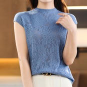 ・素材:高品質ウール(夏にぴったりの薄手素材を使用しており、通気性が良く、さらっとした肌触りを実現しています。シングルレースデザインが程よい透け感を演出し、一枚で華やかさを添えるアイテムです。半袖仕様は暑い季節にも快適さを保ちます。)