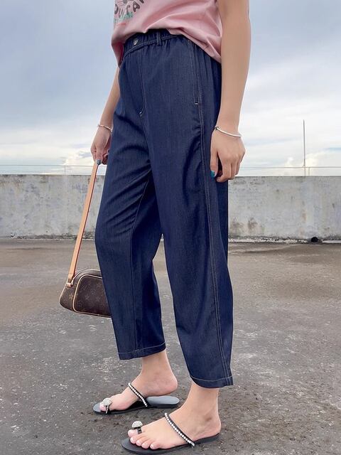 心地よいフィット感と独特なデザインが魅力の【伸縮性ウエストニンジンダディジーンズ】が新たに登場しました!このジーンズは、カジュアルなデイリースタイルから特別なお出かけまで幅広く活躍する一枚です!