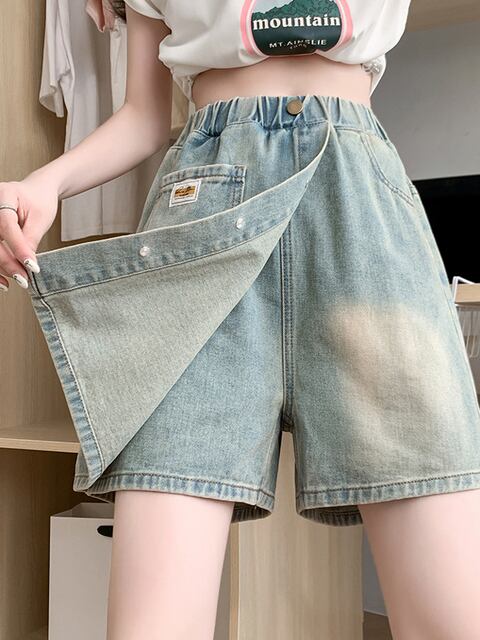 心地よい着け心地とトレンド感あふれるデザインが魅力の【伸縮性ハイウエストスプリットデニムスカートショートパンツ】が新たに登場しました!このアイテムは、カジュアルな日常からおしゃれなシーンまで幅広く活躍し、あなたのスタイルを一層引き立てる必須アイテムです。ハイウエストデザインが脚長効果を生み出し、スプリットが動きやすさを与え、遊び心満載のスタイルを楽しめます。
