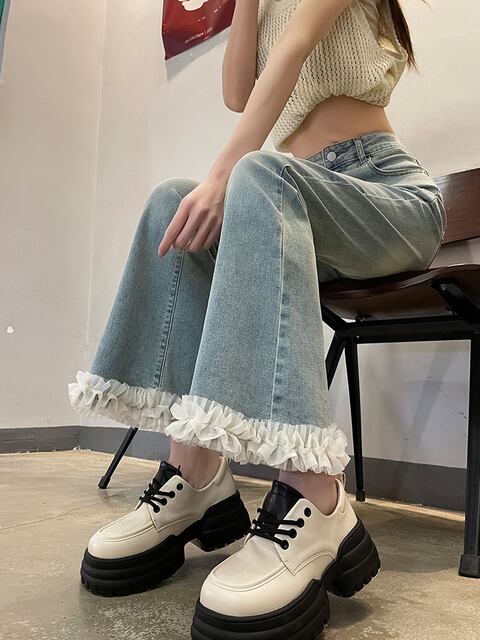 この【ホワイトレースフレアハイウエストジーンズ】を選んで、あなたのワードローブに新たな魅力を加えてみませんか?ぜひこの快適でスタイリッシュなアイテムを取り入れ、さまざまなコーディネートを楽しんでください!