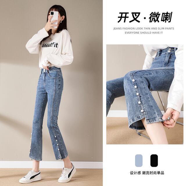 この【スリットフレアハイウエストジーンズ】を選んで、あなたのワードローブに新たな魅力を加えてみませんか?ぜひこの快適でスタイリッシュなアイテムを取り入れ、さまざまなコーディネートを楽しんでください!