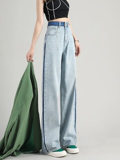 この【コントラストカラーワイドレッグストレートモッピングジーンズ】を選んで、あなたのスタイルに新たな魅力を加えてみませんか?ぜひこの素敵なジーンズを取り入れて、2025年のファッションを楽しんでください!