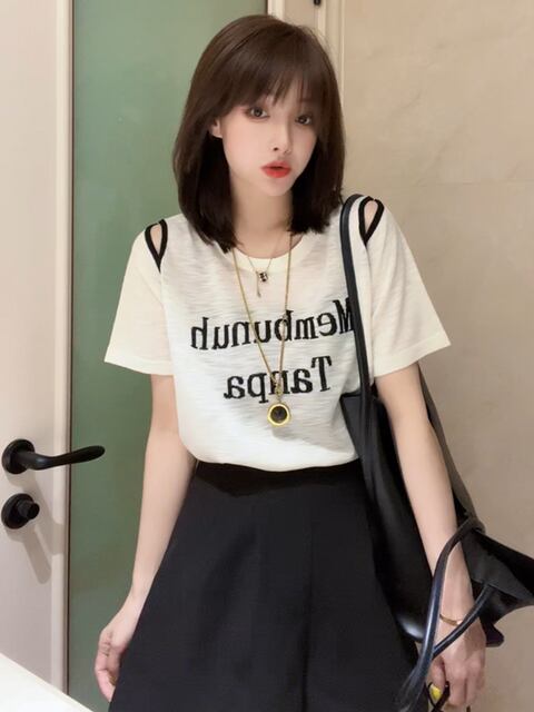 この【2025年夏のレディース向けアイスシルク半袖Tシャツ、新スタイルレターオフショルダーデザイン、ニッチトレンド、年齢を感じさせない薄手トップス】を選んで、あなたの夏のスタイルに新たな魅力を加えてみませんか?ぜひこの素敵なTシャツを取り入れて、ファッションを楽しんでください!