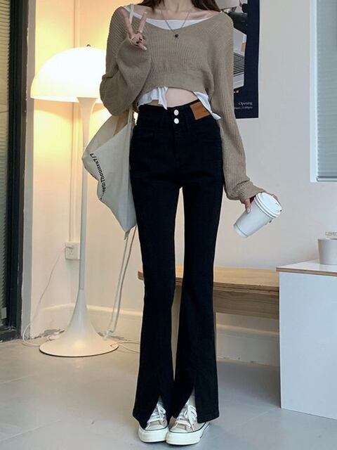 この【伸縮性ハイウエストスプリットワイドレッグフレアジーンズ】で、あなたのスタイルに洗練されたエッセンスを加えてみませんか?ぜひおしゃれで実用的なこのジーンズを取り入れて、さまざまなコーディネートをお楽しみください!