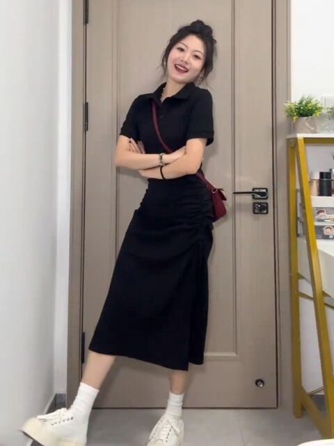 心地よい着心地とエレガントなデザインが特徴の【ヘップバーン風の黒のポロドレス婦人服夏新型ハイエンド気質ウエスト半袖ロングスカート】が登場しました!このドレスは、カジュアルなお出かけから特別な日のおしゃれまで幅広く活躍するアイテムです。ハイエンドな気質を演出しつつ、リラックスしたシルエットが魅力的です。