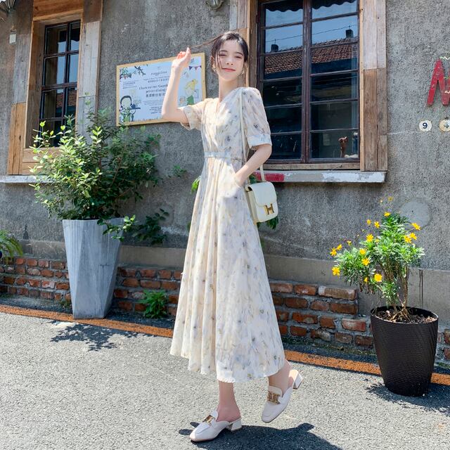この【優しい花柄ワンピースレディース服夏ティーブレイクフレンチスタイルハイエンドスリムVネックロングワンピ】で、あなたのスタイルに新たな魅力を加えてみませんか?ぜひおしゃれで快適なこのワンピースを取り入れて、夏のティーブレイクや特別なひとときをもっと楽しんでください!
