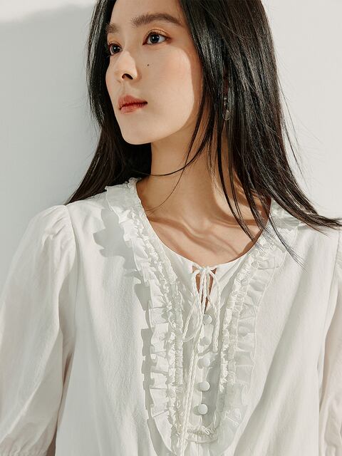 ・素材:コットンとポリエステルのミックス(柔らかな肌触りが特徴で、フレンチヘビー刺繍が施されたデザインは、一枚でも存在感を放ちます。シンプルながらも洗練された印象を与え、様々なシーンにマッチします。)