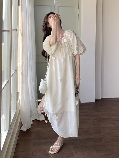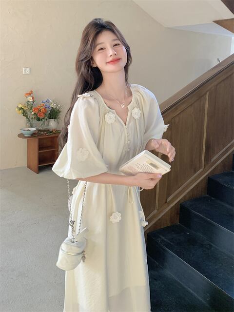心地よい着心地と洗練されたデザインが魅力の【フランスオフホワイトワンピースロングスカート】が新登場です!このワンピースは、デイリーコーデから特別な日のお出かけまで幅広く活躍し、春夏のファッションに優雅さを加えます。軽やかで柔らかな素材感が肌に優しく、快適な着用感を提供します。