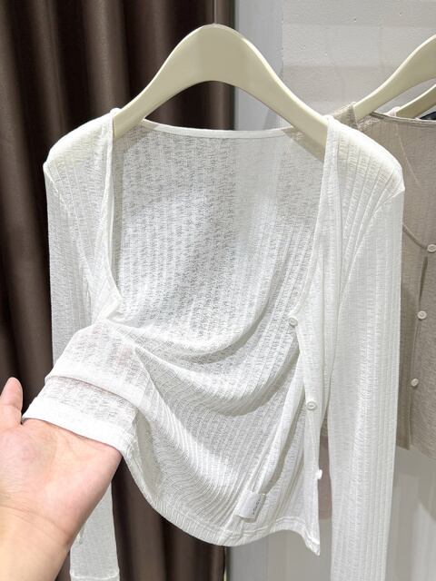 ・素材:アイスシルクとフラワーヤーン(柔らかな肌触りと優れた通気性が特長です。蒸し暑い夏の日でも快適に着用でき、ファッション性と機能性を兼ね備えたカーディガンです。)