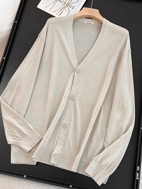 心地よい着心地と洗練されたデザインが魅力の【カットラベルエッジシングル2025夏Vネック長袖ニットカーディガンメンズ】が新登場です!このカーディガンは、カジュアルな日常から特別なお出かけまで幅広く活躍する、実用的でスタイリッシュなアイテムです。Vネックのデザインが首元を美しく引き立て、どんなコーディネートにもマッチする一枚になっています。