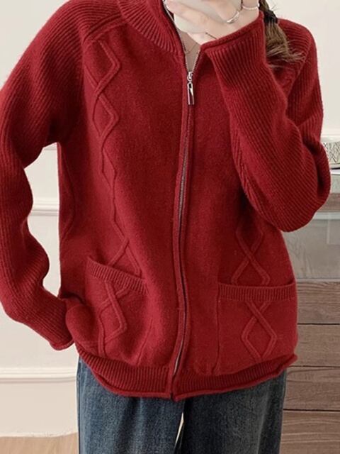 この【レディースジッパー付きレッドニットカーディガン】を取り入れて、スタイリッシュで快適な毎日を楽しんでみませんか?ぜひこの高品質なカーディガンで、日々のファッションに色と心地よさをプラスしてください!