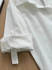 ・素材:リネン100%(自然な風合いと優れた通気性を持つリネン素材は、肌に優しく、夏の暑さも心地よく過ごせる仕上がりです。シンプルなホワイトカラーが、あらゆるコーディネートのアクセントになります。)