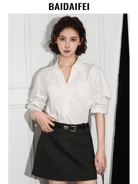 この【フレンチホワイトVネック半袖シャツレディース夏半袖】を取り入れて、洗練された夏のスタイリングを楽しんでみませんか?ぜひこの高品質なシャツで、あなたのファッションを引き立ててください!