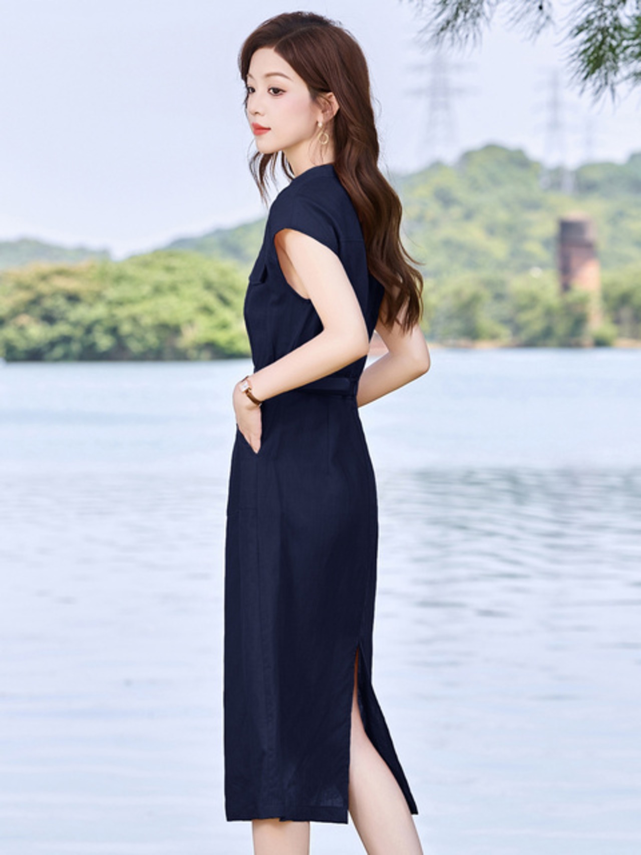 ・素材:リネンとコットンのブレンド(さらっとした肌触りを持ちながら、体のラインに美しくフィットします。通気性も良好で、夏の暑い日にも快適にご着用いただけます。)