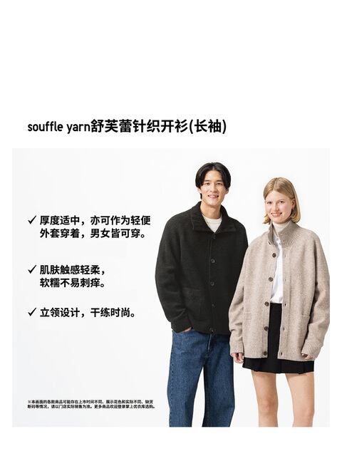 心地よい着心地と柔らかなデザインが魅力の【ユニクロ メンズ・レディース スフレヤーンカーディガン】が新登場です!このカーディガンは、カジュアルな日常使いから特別なシーンまで幅広く活躍するアイテムで、体に自然に馴染みながらもスタイリッシュな印象を与えます。厳選されたスフレヤーン素材が、肌に優しく、快適な着心地を実現しています!