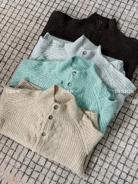 ・素材:アクリルとウールのブレンド(柔らかな肌触りで、厚みがありつつもしなやかさを兼ね備えた軽やかな着心地を実現しています。アメリカンケーブルの編み柄が印象的で、カジュアルなスタイルにもレトロな雰囲気を加える一枚です。)