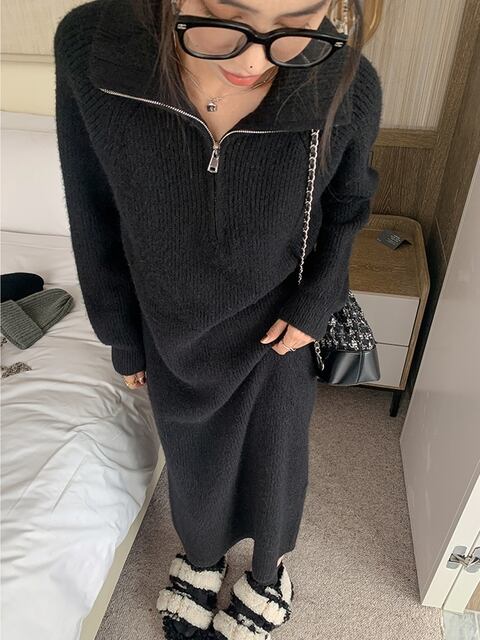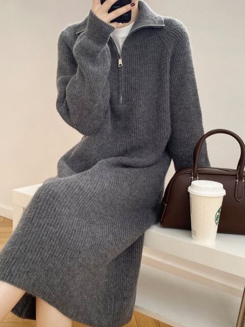 この【厚みジッパー付き ニットウールのベースレイヤーセータードレス】を取り入れて、シンプルでありながらもおしゃれなスタイルをお楽しみください!ぜひこの素敵なセータードレスで、あなたの個性を一層引き立ててください!