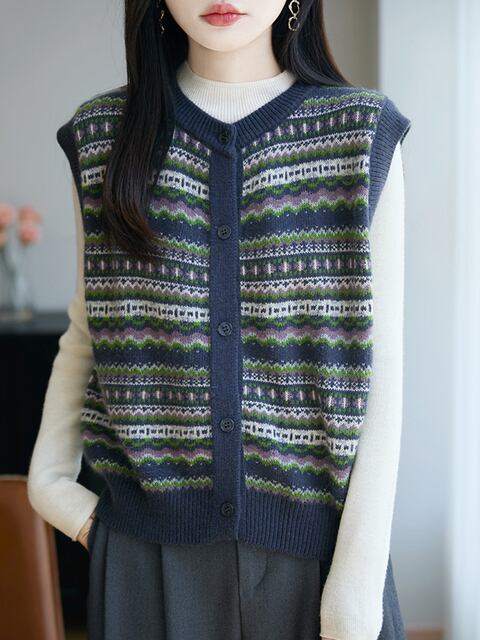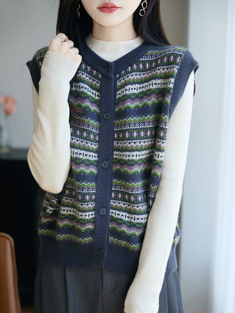 この【ジャカードニットカーディガンベスト(レディース)】を取り入れて、洗練されたコーディネートをお楽しみください!ぜひこの魅力的なアイテムで、あなたの個性を一層引き立ててください!