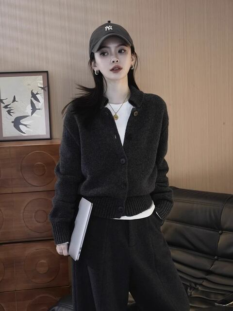 この【グレーのスタンドカラーニットカーディガンセーター】を取り入れて、洗練されたコーディネートをお楽しみください!ぜひこの魅力的なアイテムで、あなたの個性を一層引き立ててください!