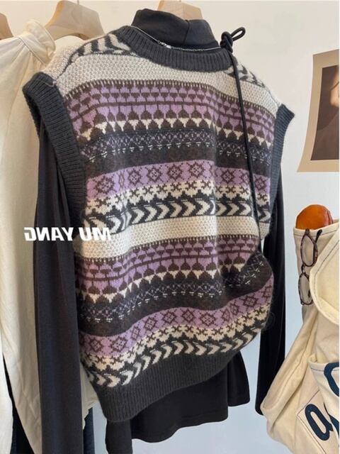 # パープルグレーカシミヤトロジャカードスリーブベスト