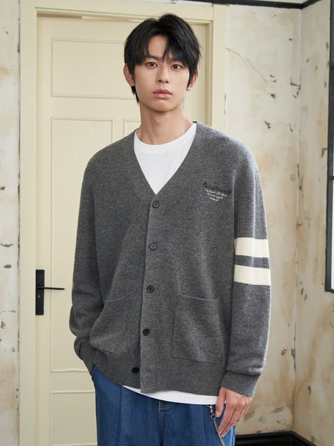 # gxgjeans カーディガンセーターメンズグレー V ネックセーターカレッジスタイル