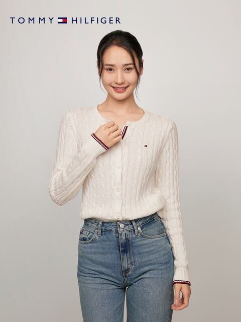 # レトロケーブルフラワーラウンドネックカーディガンセーター