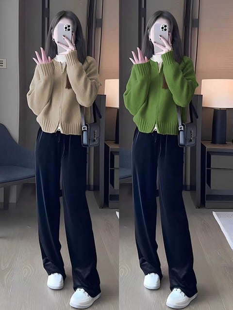 # ドーパミンオレンジトップダブルジッパーニットカーディガンジャケットソフトワックスセーター