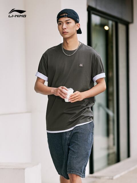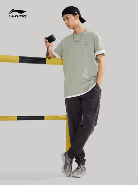 # Li Ning 半袖メンズ公式夏半袖シンプルな塩カップル着用黒 Tシャツ純綿スポーツ Tシャツ女性用