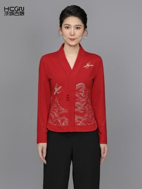 トレンディで快適な【秋のエスニックスタイル多用途ファッショナブルな中国綿レトロ女性の絶妙な刺繍青海鶴影長袖 Tシャツ V ネックトップ】が、新登場しました!品質の高い中国綿を使用したこのTシャツは、軽やかな着心地と美しい刺繍デザインが特徴です。長袖とVネックのスタイルが、エスニックな雰囲気を引き立て、カジュアルな日常から特別なお出かけまで幅広く活躍します!