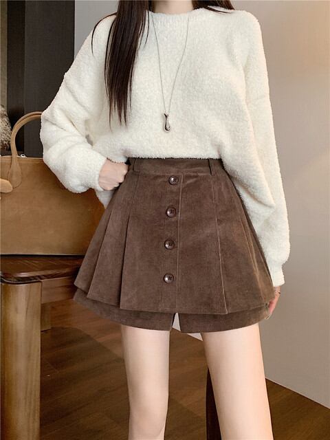 この【コーデュロイ キュロット、ハイウエスト ワイドレッグ ショーツ】を着用して、快適さとスタイルを楽しんでください!ぜひこの特別な一着をあなたのワードローブに加えて、自信を持ってコーディネートを楽しんでください!
