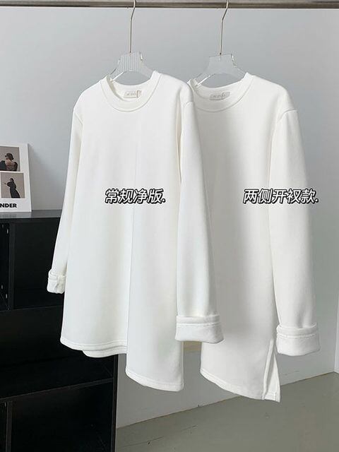 トレンディでエレガントな印象の【背の高いスリット T シャツとベルベットと厚みのある白い女性の秋と冬ルーズなミッドレングス長袖ボトムス トップ拡張バージョン】が、新たに登場しました!このアイテムは、背の高いスリットデザインとベルベット素材を組み合わせることで、スタイリッシュさと快適性を両立しています。厚みのある生地が、寒い季節でも暖かく、ルーズなシルエットがリラックスした印象を与えます。