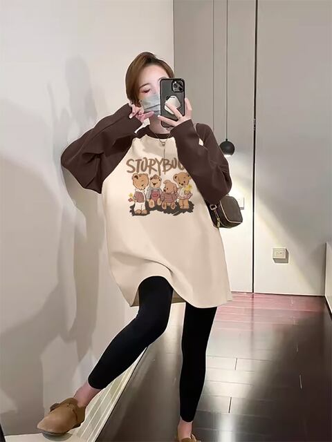 トレンディで優雅な印象の【女性用長袖Tシャツ、お尻が隠れるミドル丈のボトシャツ、シャークパンツトップスと合わせて、大きいサイズの秋冬用起毛インナー】が、新たに登場しました!このアイテムは、柔らかく温かな起毛素材を使用しており、心地よい着心地と共に肌を包み込みます。ミドル丈のデザインは、お尻をしっかりと隠しつつもスタイリッシュなシルエットを提供し、冬のコーディネートに最適です。