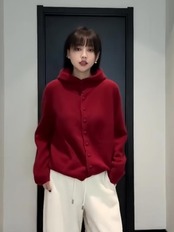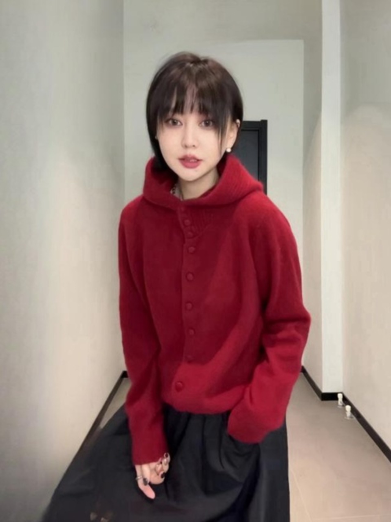 この【赤いボタンフード付きニットセーター】を着用して、スタイリッシュで快適な日常を楽しんでください!ぜひこの特別な一枚をあなたのワードローブに加えて、素敵なスタイルを実現してください!