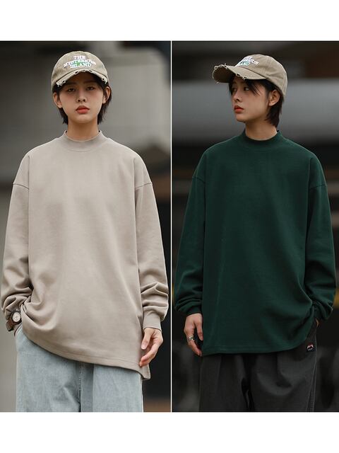 トレンディで心地よい着心地の【300グラムワイドパターン Heima Qi 日本人男性と女性のための春と秋のヘビーウェイト長袖 Tシャツハーフタートルネックインナーレイヤリングシャツ】が新登場しました!厳選された300グラムのヘビーウェイト素材を使用したこのTシャツは、ハーフタートルネックデザインが特徴で、春や秋のコーディネートに最適な一着です。