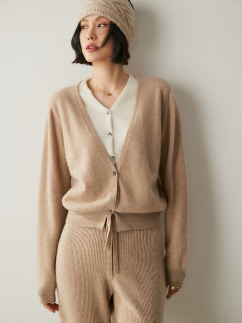 心地よい着心地と洗練されたデザインが魅力の【カシミアニットカーディガンレディースVネックカラー】が新たに登場しました!厳選されたカシミア素材を使用したこのカーディガンは、リラックスした日常からおしゃれな外出まで幅広く活躍するアイテムです。