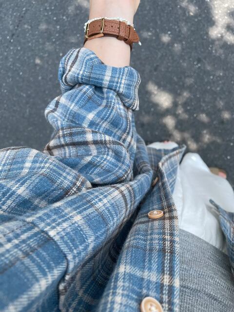 心地よい着心地とトレンド感が魅力の【ブルーチェック柄カジュアルシャツ】が新たに登場しました!カジュアルなお出かけやリラックスしたい日々にぴったりな一着です。