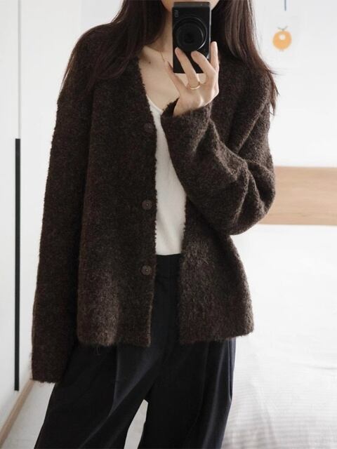 ・素材:柔らかなアクリル混紡素材(軽やかで優れた保温性を兼ね備え、着心地にも優れています。マイラー仕上げで上品さが際立ち、秋冬のデイリーコーデや特別なシーンで幅広く活躍します)