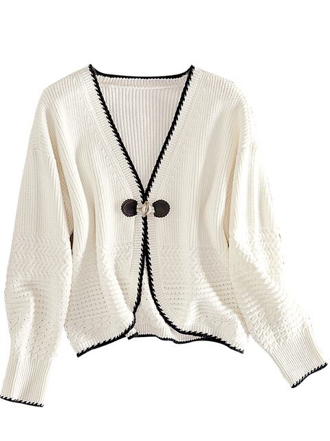 心地よい肌触りとコントラストカラーのデザインが魅力の【レディースシンプルコントラストカラーエレガントカーディガン】が新たに登場しました!洗練されたシルエットで、カジュアルからフォーマルまで幅広くコーディネートできる一着です。